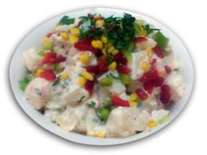 Delicious combination of diced potato, corn kernels, shredded carrot, diced red & green capsicum, chopped parsley with a seeded mayonnaise dressing.