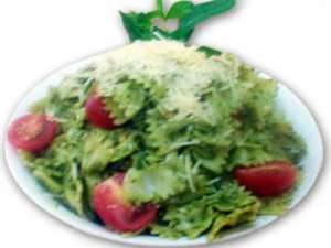Butterfly pasta, pine nuts, cherry tomatoes, parmesean cheese with pesto, garlic & olive oil dressing.